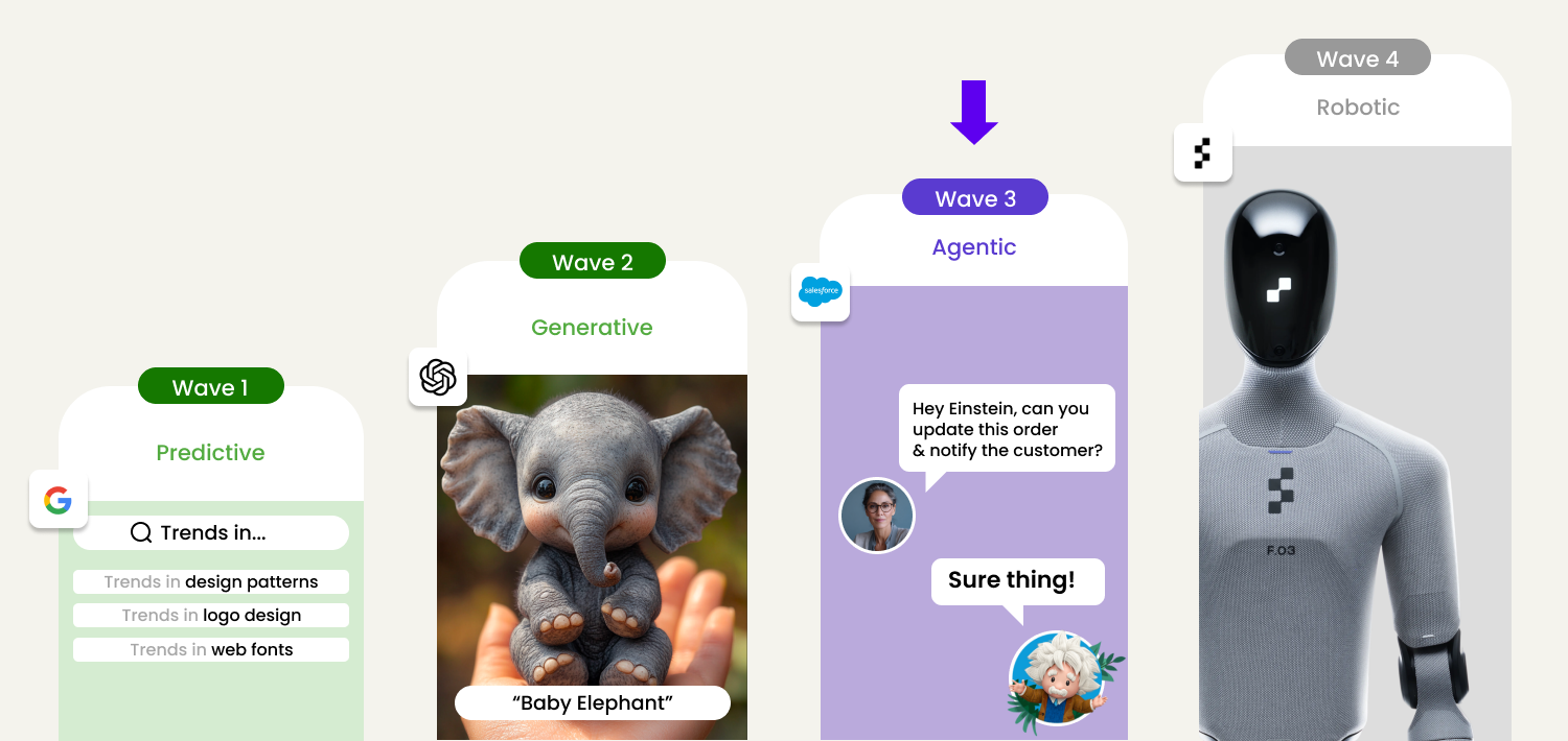 We are now entering the third wave of AI - the agentic phase - where systems don’t just understand what users want, but can also act on their behalf. This completely changes the designer's role. Designers no longer design interfaces or flows - they create the intent and context of use and the behaviour schematics for an AI-powered system that learn and adapts over time.
